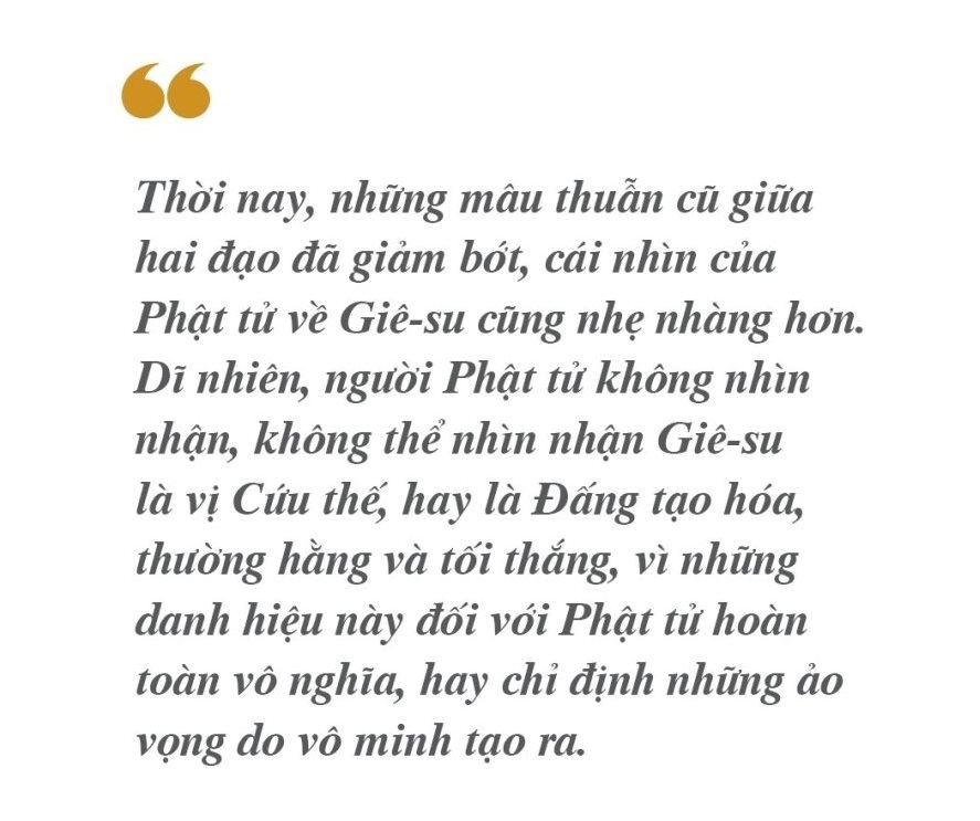 "Giê-su qua cái nhìn của người Phật tử" là một đề tài lý thú, nhưng quả thực là khó. Trước hết, trong tất cả những đạo lớn của thế giới, có lẽ đạo Phật là đạo xa cách đạo Ki-tô nhất trên những giáo lý cơ bản và trên nhiều điểm quan trọng, mặc dù vẫn gần gũi, hay có vẻ gần gũi, trên nhiều điểm khác.